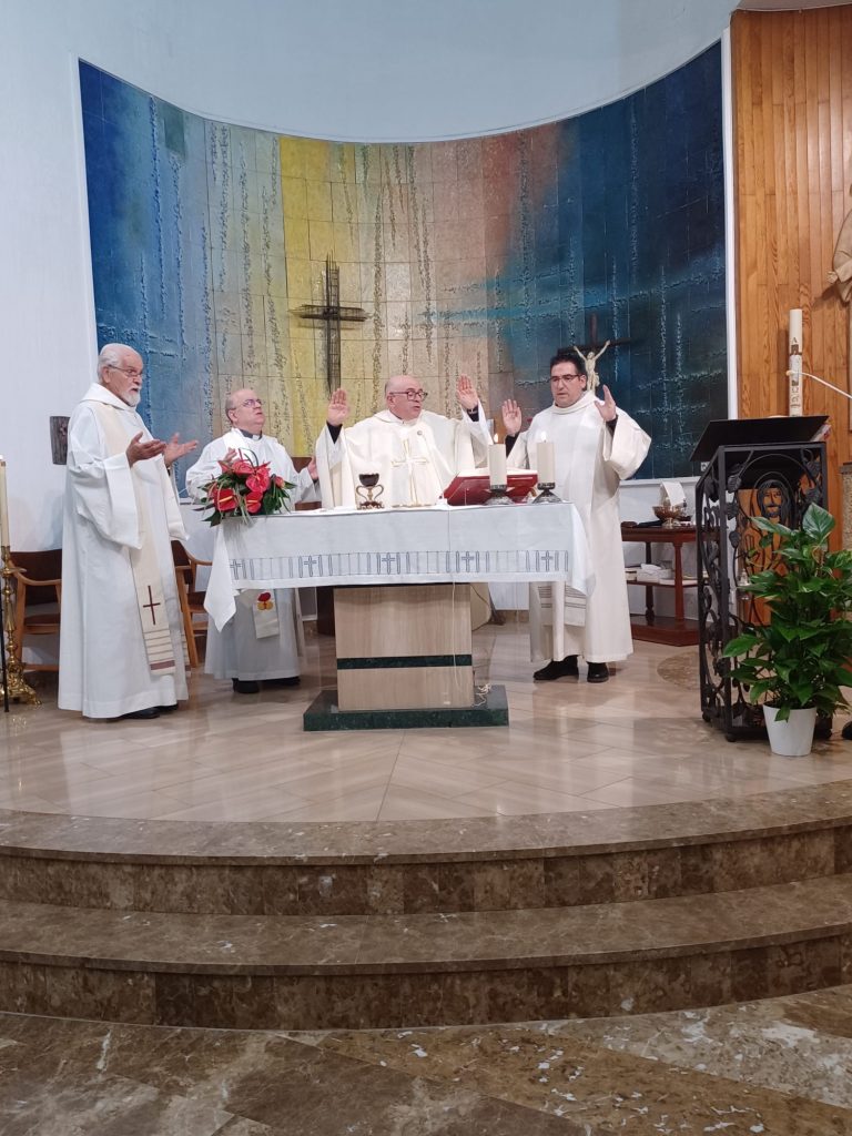 Este pasado domingo día 17 celebrábamos la fiesta de San Alberto Magno. Su festividad litúrgica es el 15 de noviembre, aunque desde hace años por favorecer la participación de los fieles, se traslada al domingo posterior. La eucaristía solemne tuvo lugar a las 13 h., presidida por el nuevo obispo auxiliar electo D. Arturo Javier García Pérez, condiscípulo del párroco D. Salvador Martorell Tronchoni. Junto con ellos concelebraron D. Justino Faria, adscrito de la parroquia y D. Sergio Requena, Delegado de Vocaciones. Los miembros del Consejo de Pastoral Parroquial coordinaron la participación de los fieles en esta eucaristía en la que intervino también el grupo de canto de la parroquia.
