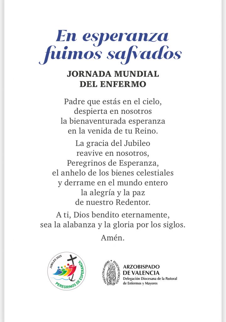 Celebramos la Jornada Mundial del Enfermo el próximo martes 11 de febrero, en la memoria de Nuestra Señora la Virgen de Lourdes, Salud de los Enfermos, en este año jubilar dedicado a la esperanza. En la Bula de Convocación del Jubileo ordinario del año 2025 Spes non confundit, el Papa Francisco nos pide ‒en su número 11‒ a todos los cristianos un signo de esperanza para nuestros enfermos.