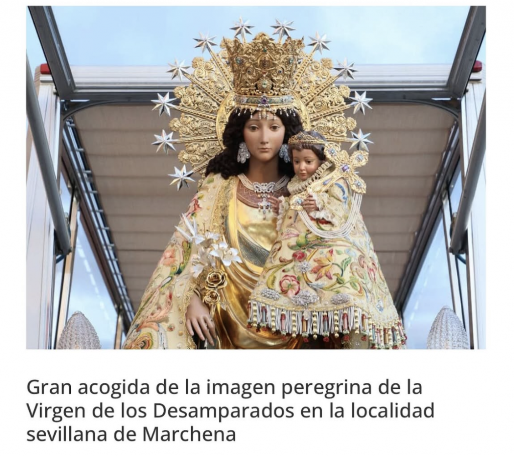 Gran acogida de la imagen peregrina de la Virgen de los Desamparados en la localidad sevillana de Marchena. Primer destino dentro de su recorrido, por primera vez, a Sevilla