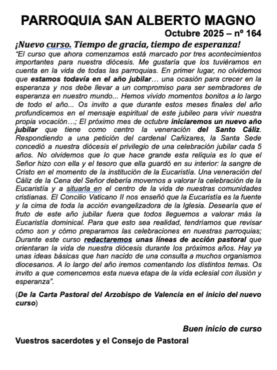 HORARIOS Y ACTIVIDADES CURSO PASTORAL 25/26