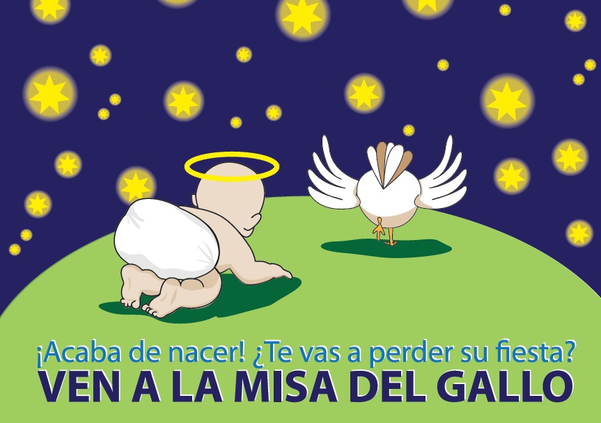 La Misa del Gallo la celebraremos el miércoles 24 a las 20 h. La colecta de ese día, así como las de las Misas del día de Navidad del 25, serán destinadas a Cáritas Parroquias para las acciones solidarias que se realizan en estos días tan entrañables.